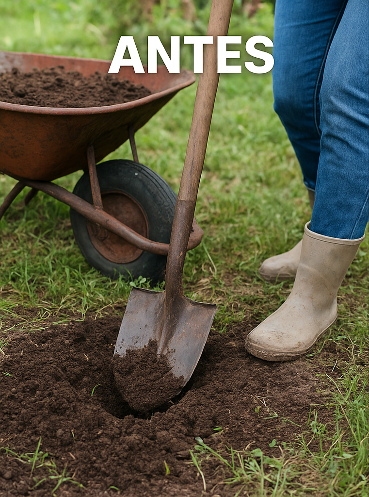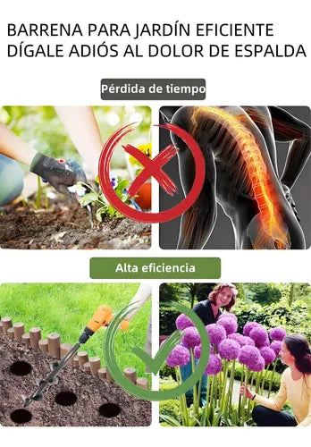 El taladro hace la fuerza. Evitas dolores de espalda, manos y muñecas causados por palas o herramientas manuales.