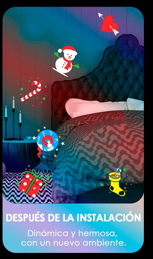 Ilumina perfectamente paredes, techos y superficies cercanas, siendo ideal para habitaciones, living, entradas y espacios pequeños/medianos.